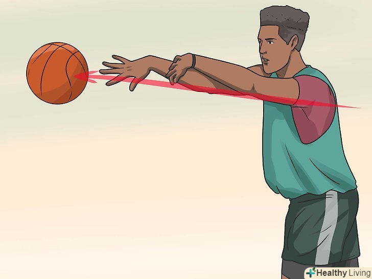 - Випрямляйте повністю руку в кінці кидка і тримайте лікоть вище очей, коли відпускаєте м'яч.