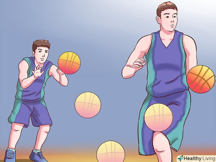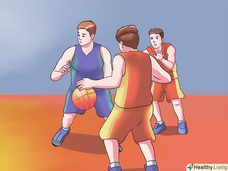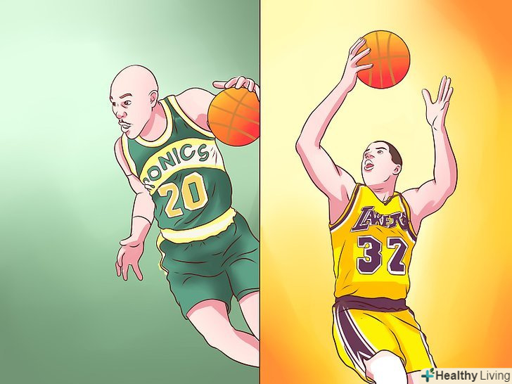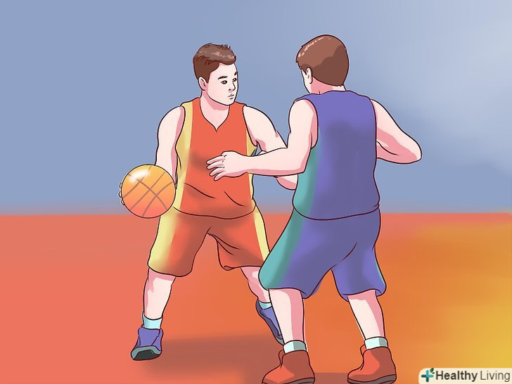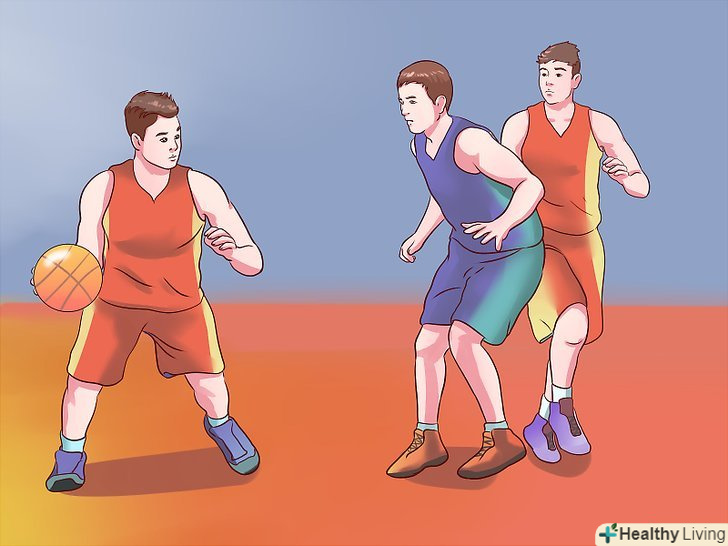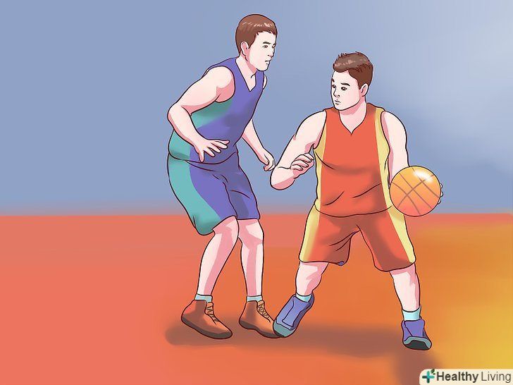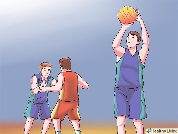 - Якщо ви намагаєтеся виконати кидок, а перед вами захисник, то спосіб очистити місце для кидка-обманний кидок. Просто почніть свій звичайний рух під час кидка, потім раптово зупиніть його. Упріться всією площею ступенів в майданчик, підігніть коліна, схопіть м'яч обома руками і піднесіть його до носа, немов збираєтеся виконати кидок. [2] при вдалому виконанні, захисник може підстрибнути для того, щоб заблокувати кидок, надаючи вам можливість або оббігти його, або розрахувати час кидка, виконавши його в той самий момент, коли противник торкнеться ногами підлоги.