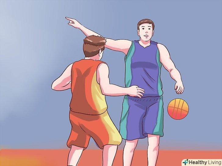 Знайте коли (і як) виконувати кидок. як згадувалося вище, великим бонусом розігруючому буде перевірена здатність забивати. Якщо захист вважає, що у вас є можливість забити, то вони закриють вас, відкривши для пасу інших гравців. Найкращий спосіб бути загрозою для кільця « "забивати по можливості". Якщо захист залишить вас відкритим, то покарайте їх.- Скажімо, наприклад, що ви віддали м'яч товаришеві, але його швидко закрили і він не може виконати кидок. Якщо захисник, опікав вас, піде за м'ячем, то краще буде повернути м'яч собі відразу ж, для виконання кидка — є шанси, що ваш товариш переправить вам м'яч швидше, ніж захисник команди супротивників повернеться до вас. Однак зауважте, що це вимагає від вас і вашого товариша знання того, що робить захист суперників.