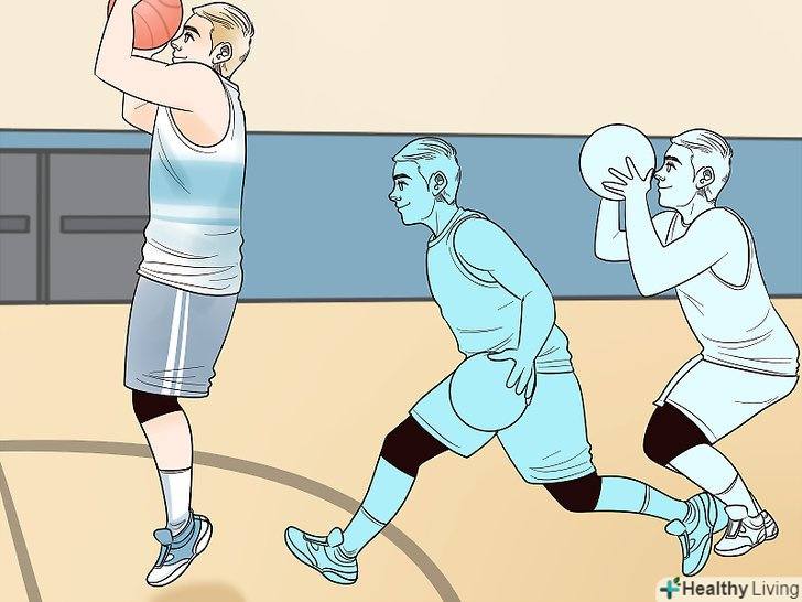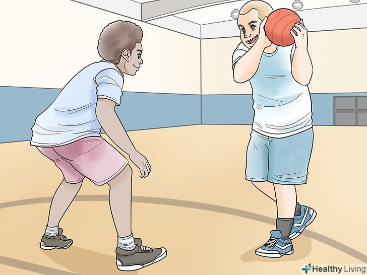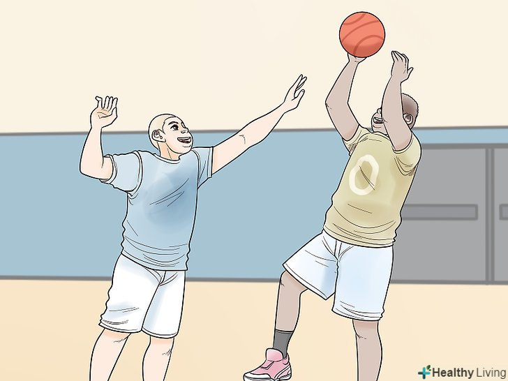 Тренуйтеся разом з напарником, для відчуття тиску. як би наполегливо ви не тренувалися поодинці, все це не здатне замінити досвід роботи з захисником, який намагається заблокувати ваш кидок. Як тільки ви відчули впевненість в базових кидках в стрибку, постарайтеся задіяти друга, який буде захищатися, поки ви переміщаєтеся по майданчику, виконуючи свої стрибкові кидки. Пам'ятайте, що в справжній грі, захисник завжди буде вам заважати зробити кидок, тому, чим більше ви практикуєтеся грати проти справжніх гравців, тим краще.- Кидки при постійному тиску наполегливого захисника можуть бути дійсно важкими — вам потрібно володіти хорошим дриблінгом і вміти добре поводитися з м'ячем, щоб мати можливість отлепиться від захисника ненадовго і встигнути зробити кидок, тому, швидше за все, вам потрібно буде тренувати ці навички окремо.