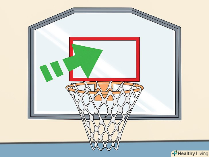 Використовуйте щит при кутових кидках. більшу частину часу захист намагатиметься перекривати легкі шляхи підходу до кошика. З цієї причини, зазвичай ви будете кидати в кошик не прямо, а під кутом. З кутових позицій складно потрапити "чисто", ніж з прямих, тому багато гравців намагаються кидати від щита. Це уповільнює м'яч і направляє його під кутом в кошик, збільшуючи ймовірність попадання кутового кидка.- Складно повірити, але щодо кидків у стрибку проводився науковий експеримент. Результати вказують, що найкраще кидати м'яч у щит так, щоб він потрапив у верхню центральну частину квадрата за кільцем. У той час як кут кидка стає більш вираженим (тобто, гравець кидає з дальньої дистанції), «ідеальне» місце на щиті зсувається вгору і в сторону від центральної точки в діагональному напрямку (іншими словами, кидає з правого боку кільця, повинен намагатися потрапити вище і правіше від верхньої центральної точки квадрата на щиті). [8]