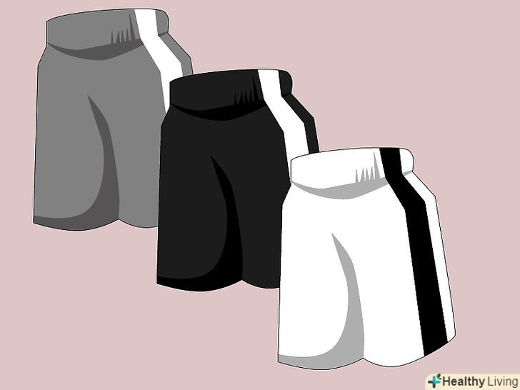 Купіть все, що Вам необхідно. Вам будуть необхідні, принаймні, дві або три пари баскетбольних шортів для тренувань.- Основні кольори, які варто придбати, білий, чорний і синій. Вони повинні бути вільними, але щільно сидіти на лінії талії.