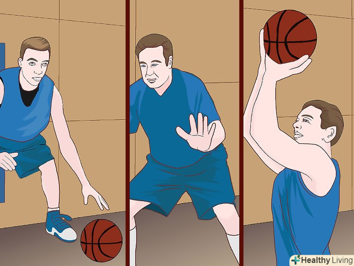 - Захисні переміщення: займіть оборонну позицію (коліна зігнуті, сідниці відведені назад, грудна клітка спрямована вперед, руки підняті) і переміщайтеся по паркету. [13]