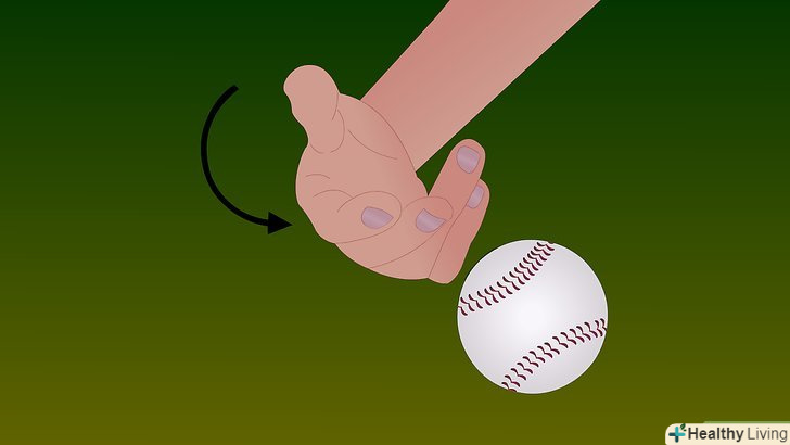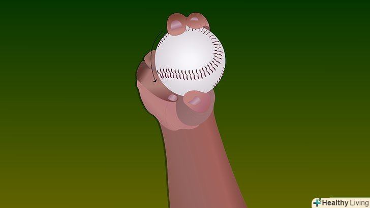 Візьміться за м'яч. як і інші кручені захвати, міняйте ваш вказівний палець. Візьміться за м'яч середнім пальцем уздовж нижнього шва і пальцем уздовж заднього шва. Тримайте бейсбольний м'яч так, щоб вигини швів були близько до вашої долоні, один зверху і одні знизу. Зігніть вказівний палець всередину перед розміщенням його на м'ячі так, щоб ваші нігті і верх фаланг залишалися на м'ячі, а фаланга середнього пальця вказувала на ціль.- Для правшів, помістіть середній палець на правому шві зверху і великий палець на дні на лівому шві. Лівші повинні робити навпаки.
