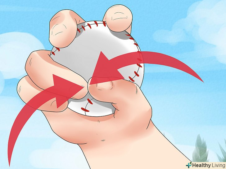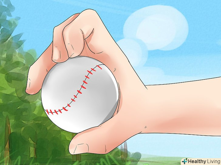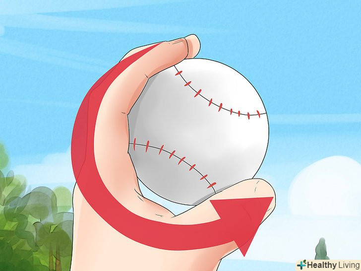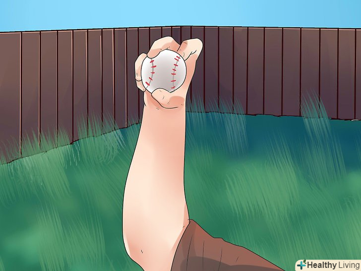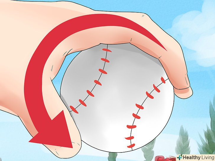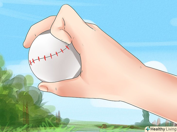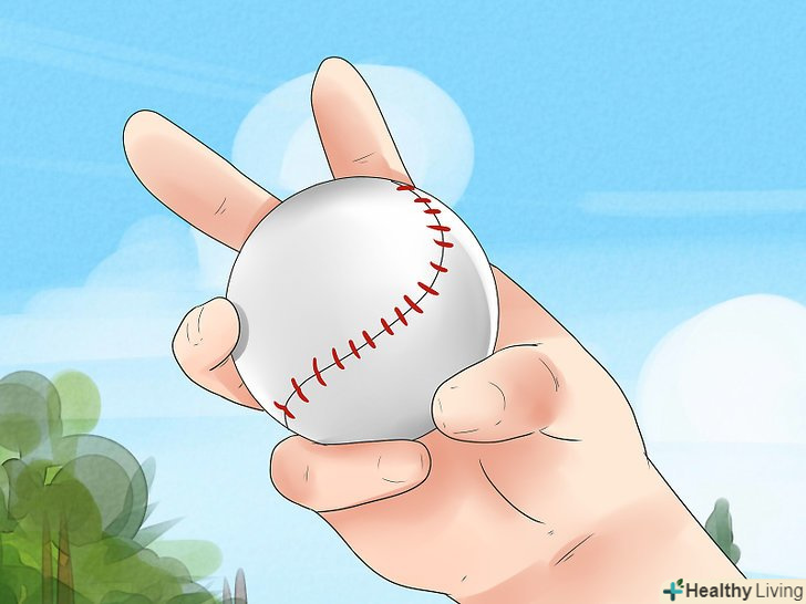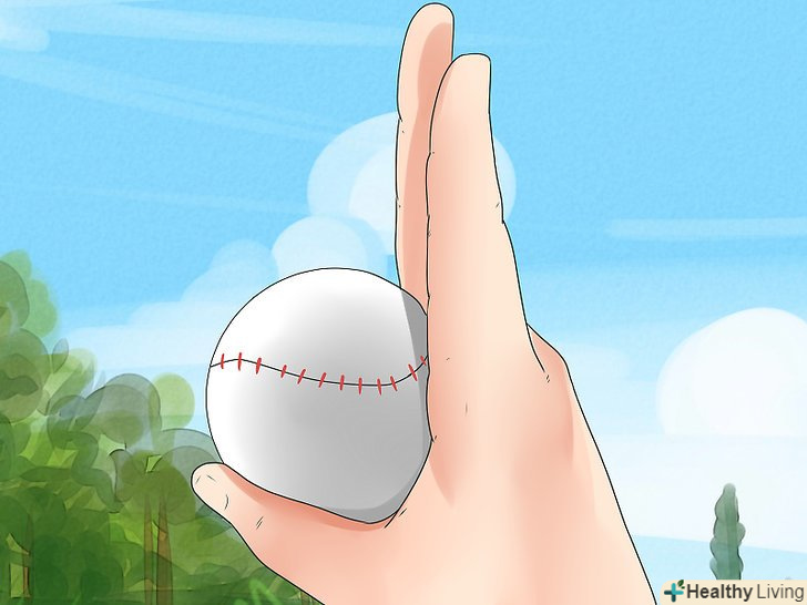 Використовуйте більш просунутий захват "чотири шви". для цього кидка вам потрібно захопити м'яч великим, середнім пальцями і кісточкою вказівного. Якщо ви будете тримати м'яч таким чином, це дозволить йому впасти точніше і пізніше (ближче до беттеру). [22] Фаланговий захоплення, хоч його і складніше виконати, збільшує швидкість кидка, не жертвуючи обертанням.- Кидок з фаланговим захопленням в середньому швидше на 4 кілометри на годину, ніж стандартний кручений.