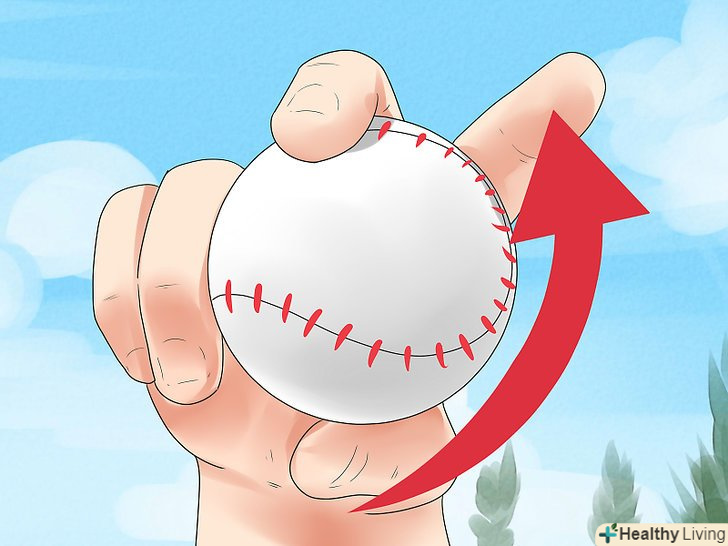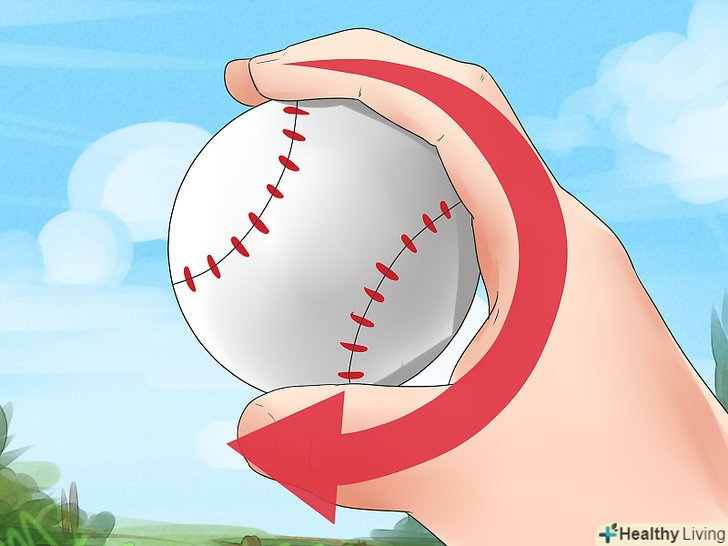 Використовуйте захоплення "чотири шви". Візьміть м'яч так, щоб можна було побачити два шви спереду і два – ззаду. [4] захоплення "чотири шви" вважається більш ефективним, ніж захоплення "два шви". Він дозволяє пітчеру кидати м'яч під будь-яким кутом, якщо він тримає руку на задній частині м'яча і кидає його клацаючим рухом. [5]- Захоплення "два шва" використовують при швидкому киданні м'яча. Замість того, щоб падати вниз (як при крученому кидку), при захопленні "два шва" м'яч буде летіти вправо або вліво.