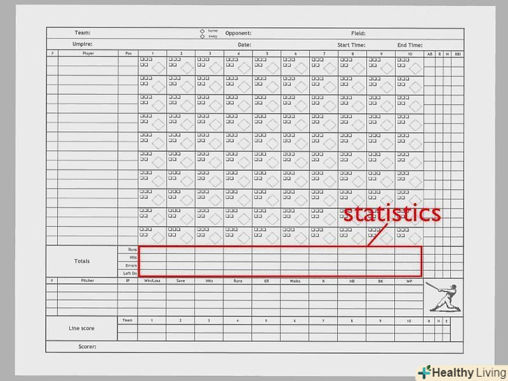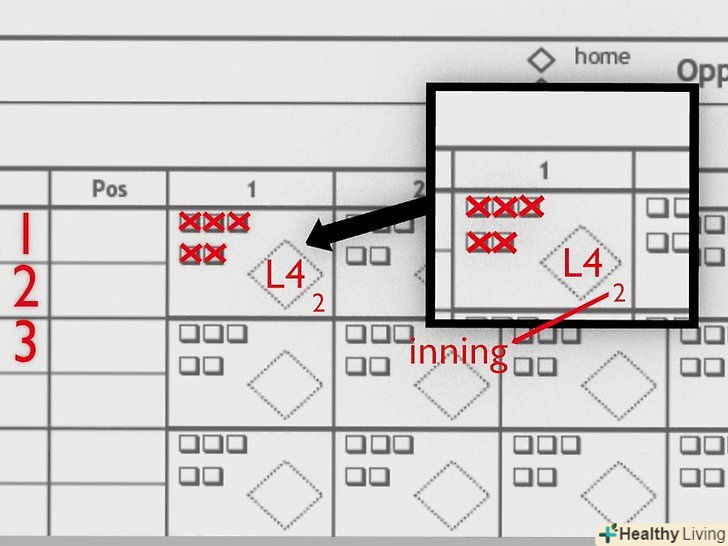В кінці іннінга, відзначте статистику в клітинах, які йдуть під колонкою.- Якщо у команди були додаткові удари, просто збільште колонку іннінга і перенесіть туди відповідні номери.
