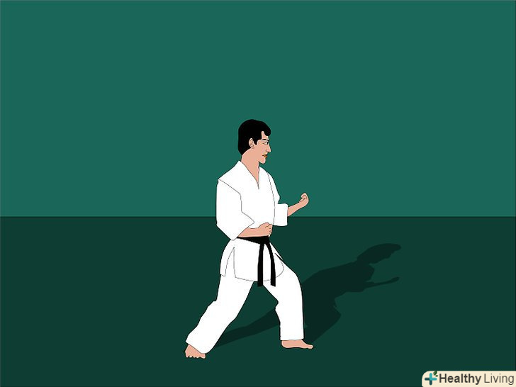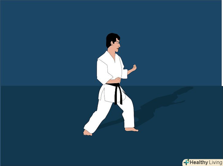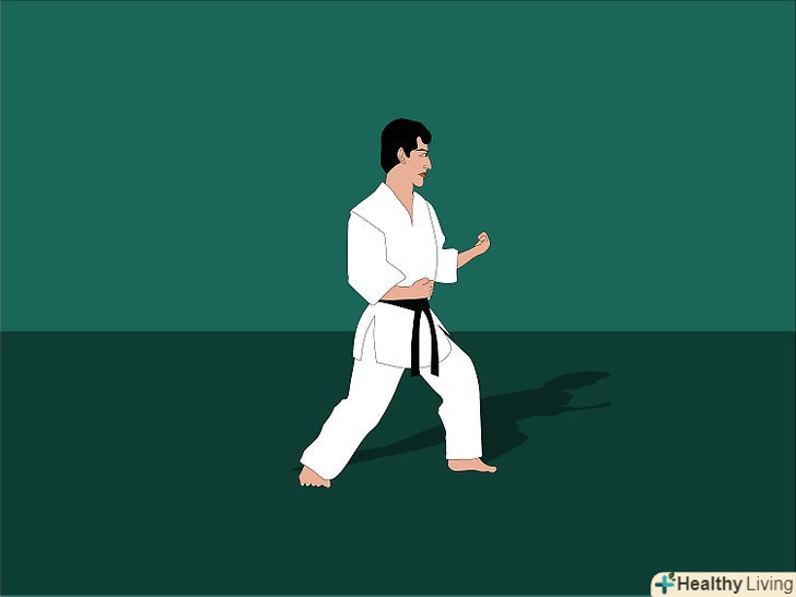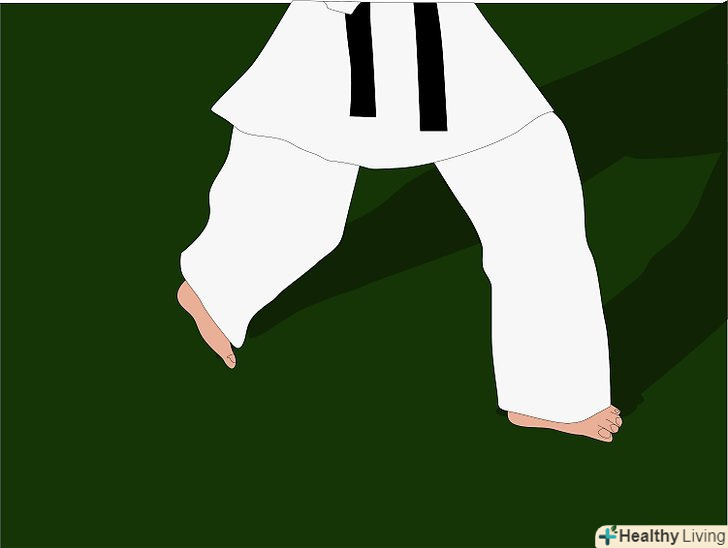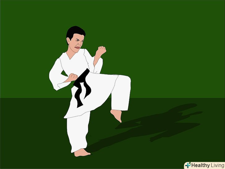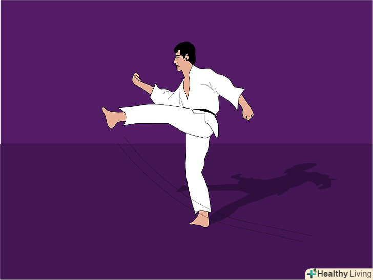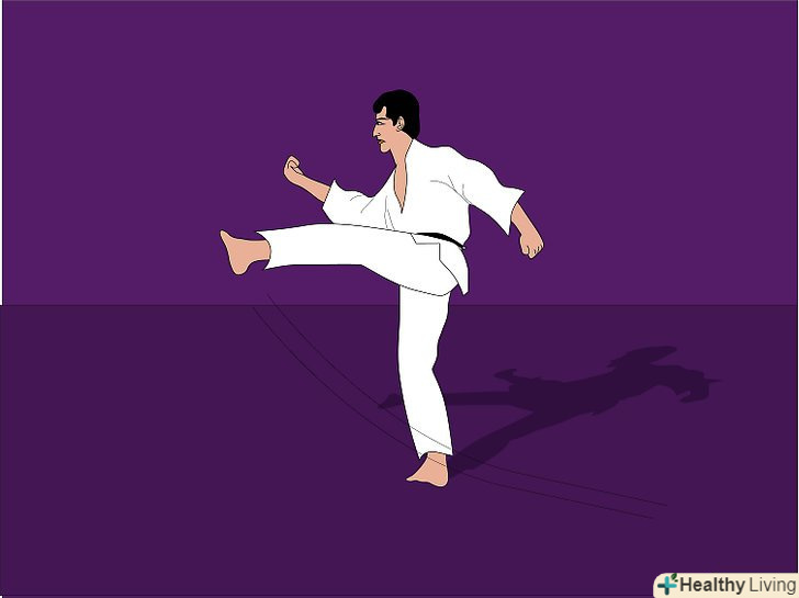- Поставте задню і передню ноги вперед. підніміть ногу і скористайтеся Гомілкою для прямої атаки. Якщо використовувати для атаки внутрішню частину або подушечку стопи, то при правильному виконанні наступного елемента можна нанести значні пошкодження. Поки нога знаходиться в повітрі, не робіть клацання, а доведіть удар. Експерти карате заперечать, тому що вони можуть виконати це не втрачаючи рівноваги. І дійсно, до удару приєднується ефект висоти, і вперед не переміщається велика вага.
