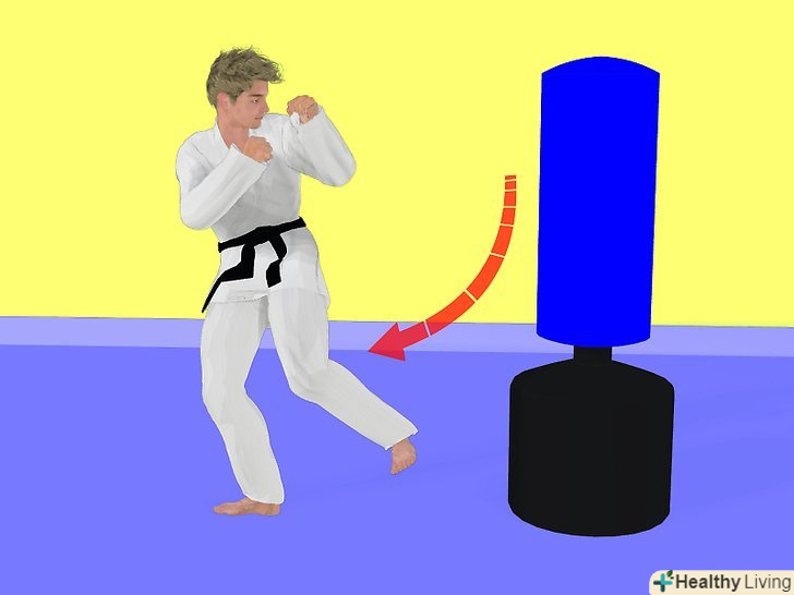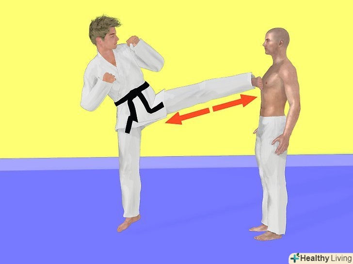 Витягніть б'ючу ногу і нанесіть удар. можна нанести удар як ступень, так і п'ятою.- Якщо ви тренуєтеся з партнером, то краще вдарити ступень.