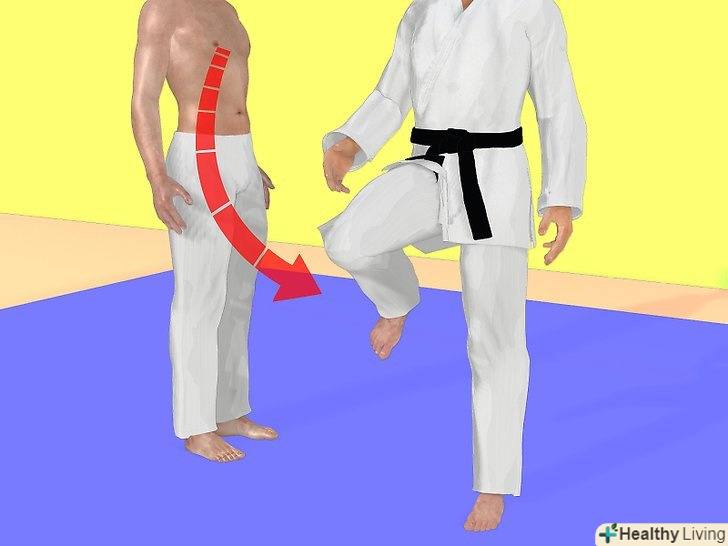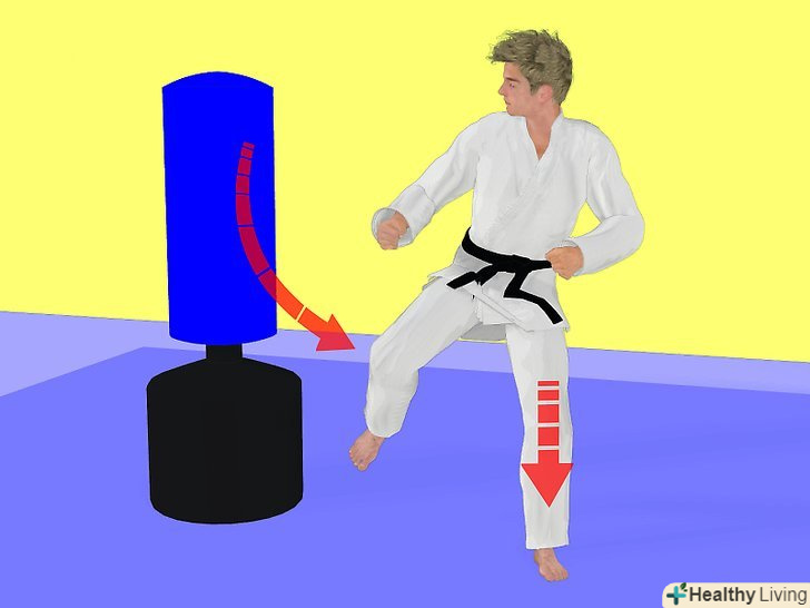 - Не "блокуйте" коліно, або не випрямляйте його повністю, інакше ви можете собі нашкодити. Навіть в момент удару коліно повинно бути злегка зігнуто. [3]