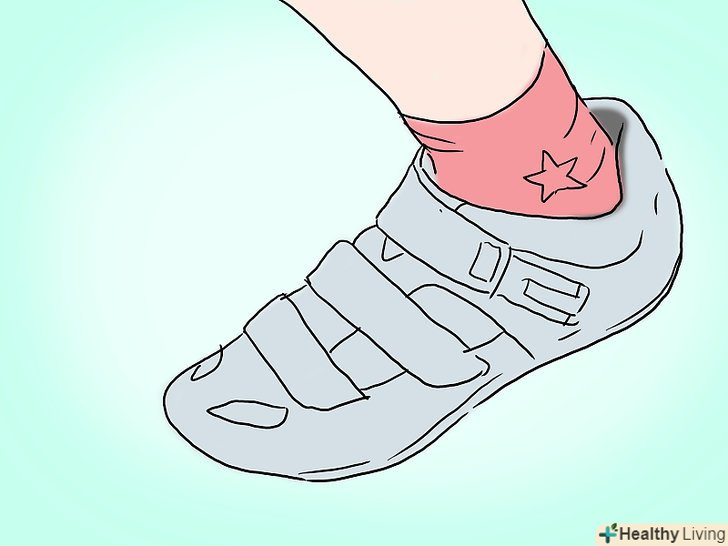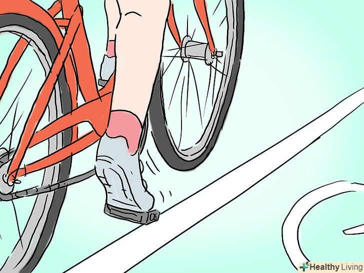 Одягніть зручне взуття. покататися на велосипеді надівши туфлі з високим каблуком або шльопанці-навряд чи це гарна ідея. Виберіть зручне взуття з плоскою підошвою, у якій немає ніяких звисаючих частин, які можуть зачепитися за деталі велосипеда в процесі їзди. Сховайте шнурки.