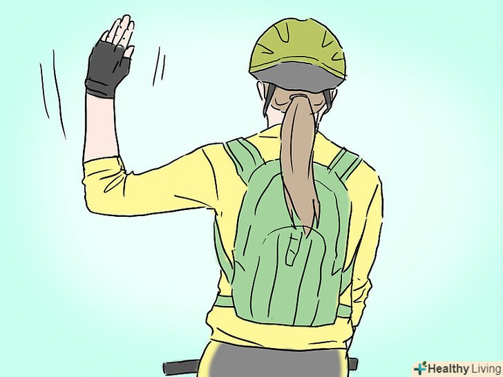 Дайте знати про свої наміри іншим учасникам дорожнього руху. це стосується поворотів або зміни положення на дорозі. Тримайте руку прямо паралельно землі з відкритою долонею, зверненої вниз - цей жест зрозуміліше, ніж зігнута в лікті, трохи піднята рука. Перш ніж прибрати руку з керма, переконайтеся, що попереду немає ніяких перешкод: каменів, ям або інших перешкод, в які може потрапити колесо велосипеда. Покажіть, яким буде ваш наступний рух - так ви не тільки зробите ваші дії очевидними для інших учасників руху, але і зарекомендуєте себе як ввічлива людина.