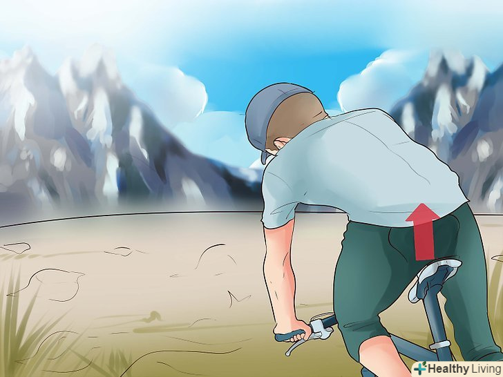 - Підйом на пагорби по бездоріжжю вимагає іншого підходу. Під час їзди по стежках і іншим хитким поверхонь існує ризик впасти з велосипеда, тому будьте дуже обережні, вибираючи таку дорогу тільки при крайній необхідності і правильно розподіляючи вагу. Перемикайте передачі згідно опису в статті, але вага максимально розташовуйте над заднім колесом, щоб підтримувати надійне зчеплення з хиткою поверхнею. Якщо на особливо крутому ділянці потрібно встати з сідла, то перенесіть вагу назад і не піднімайтеся високо над сидінням (тіло повинно як би "парити" над ним). Тримаючись за кермо, тягніть його назад, а не вгору. [9]