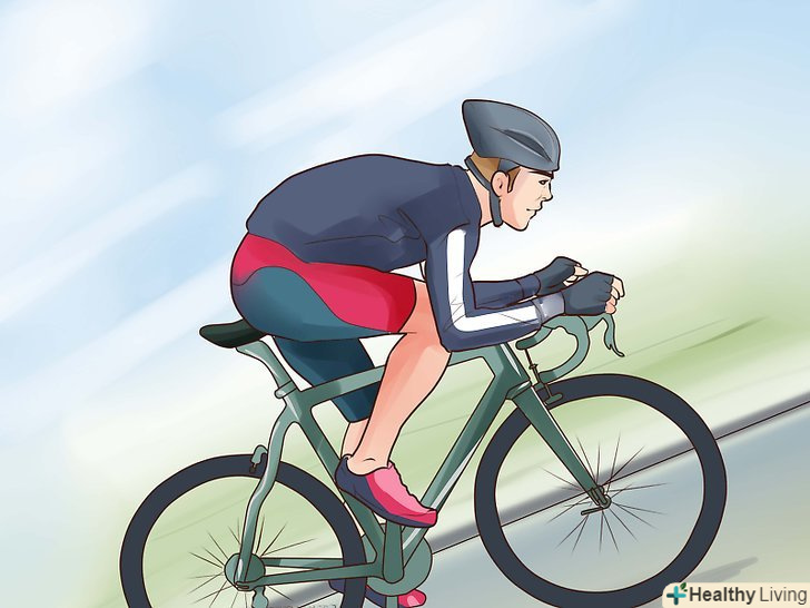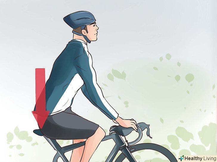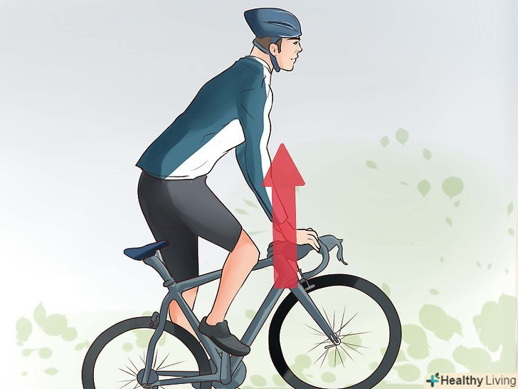 Встаньте з сидіння, наближаючись до вершини пагорба. на цьому етапі необхідно використовувати вагу тіла цілком, щоб тиснути на педалі з подвоєною енергією. Їхати на велосипеді стоячи набагато енерговитратніше, ніж сидячи, тому не перестарайтеся; продовжуйте до останньої ділянки крутого пагорба. Руки тепер повинні триматися поверх гальмівних рукояток.- Ритмічно рухайте тілом в такт ногам. Спина повинна бути прямою, а грудна клітка відкритою для правильного дихання. [4]