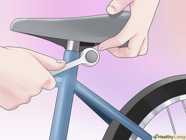 Відрегулюйте сидіння по висоті. використовуючи отримані вимірювання, відрегулюйте довжину підсідельної труби. Для цього вам знадобитися рулетка і гайковий ключ. Ось як це робиться:- Прикладіть кінець рулетки до місця, де шатун педалі кріпиться до велосипеда.