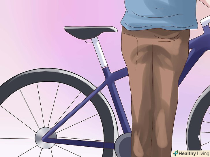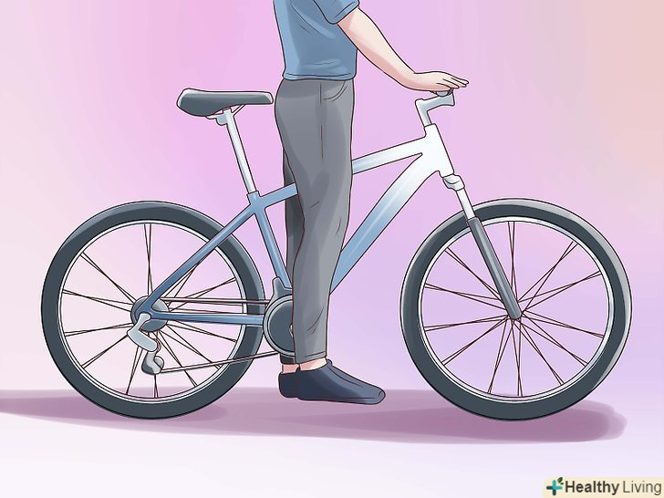Проведіть наступний тест. цей тест дуже простий для того, щоб зрозуміти наскільки вам підходить висота велосипеда. Візьміть величину, яку Ви отримали при вимірюванні відстані від підлоги до верхнього краю книги. Ця величина повинна бути на 2 дюйми (5 см) більше, ніж висота велосипеда у верхній точці підсідельний труби (від верхньої точки до осі з педалями).- Щоб виконати цей тест, перекиньте одну ногу через верхню вісь велосипеда і вирівняйте його. Якщо у вас гірський велосипед, то ідеальна відстань між вашою промежиною і верхньою трубою має бути не менше 5 сантиметрів. При цьому переконайтеся, що на вас надіта спеціальне взуття для їзди на велосипеді!