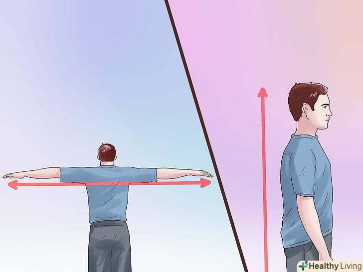 - Виміряйте розмах ваших рук (від кінчиків пальців однієї руки до кінчиків пальців іншої) і відніміть ваш зріст. Якщо ви отримали позитивне число (ваш розмах рук більше, ніж ваш зріст), то вибирати вам треба найбільший розмір; якщо ви отримали негативне число (ваш зріст більше, ніж розмах рук), то з двох розмірів вам треба вибирати найменший. [5]