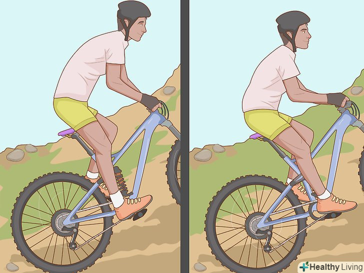 Змінюйте інтенсивність. їзда на короткі відстані з великим опором дозволить спалити більше калорій. Тривала їзда в спокійному темпі і з невеликим опором підвищить витривалість. Однак найкраще чергувати ці два типи навантаження. Було встановлено, що такий підхід дозволяє спалювати максимум калорій. [15]- Катайтеся по пагорбах. Чемпіонка Ребекка Руш при підйомі в гору по черзі встає і сідає на велосипеді, щоб підвищити витривалість.