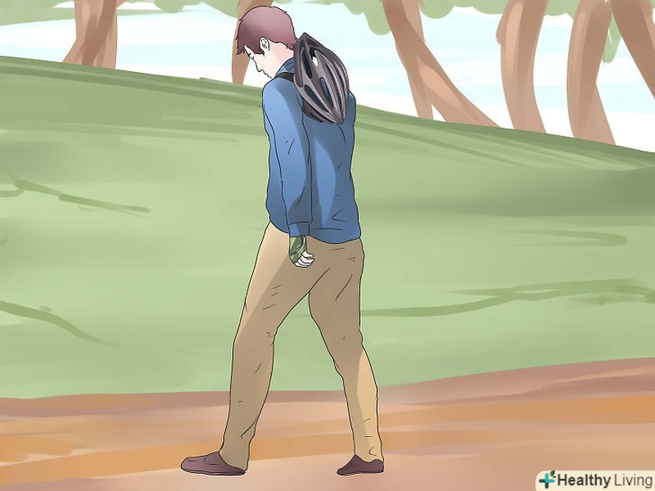 Виберіть Велосипедний шолом. Хороший шолом повинен бути пріоритетом, якщо ви хочете почати їздити на велосипеді по бездоріжжю. Ваш шолом повинен щільно прилягати, але не закривати огляд і не тягнути вниз в районі вух. Ніколи не сідайте на гірський велосипед без шолома.