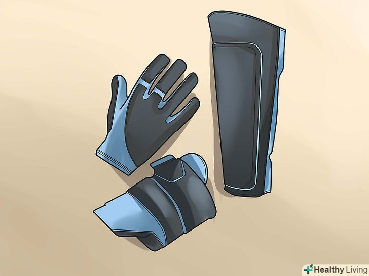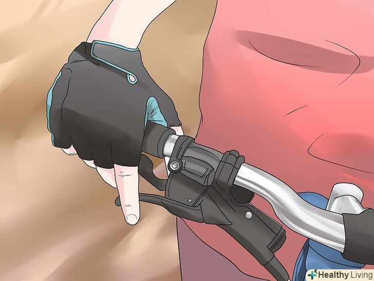 Розгляньте додатковий механізм безпеки. у той час як немає необхідності купувати щось відразу для ваших попередніх поїздок, є деяке обладнання для забезпечення безпеки, яке ви можете захотіти придбати пізніше. У міру того як ви будете прогресувати в цьому спорті, ви можете виявити, що вам потрібно щось ще, але це повністю залежить від вас, від вашого стилю їзди і ваших потреб. Комплектація деяких гірських велосипедистів здається неповною без:- Рукавичок