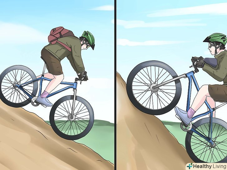- Коли ви йдете під гору, найголовніше-розслабитися. Не старайтеся і не намагайтеся надмірно контролювати велосипед, або ви ризикуєте зазнати невдачі. Зосередьтеся на перешкоді і встаньте з сидіння, зберігаючи педалі паралельно землі.