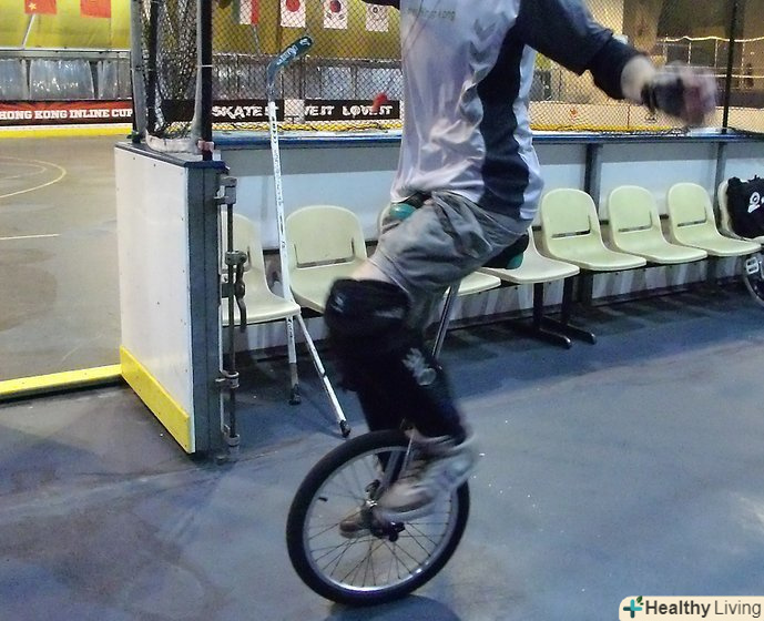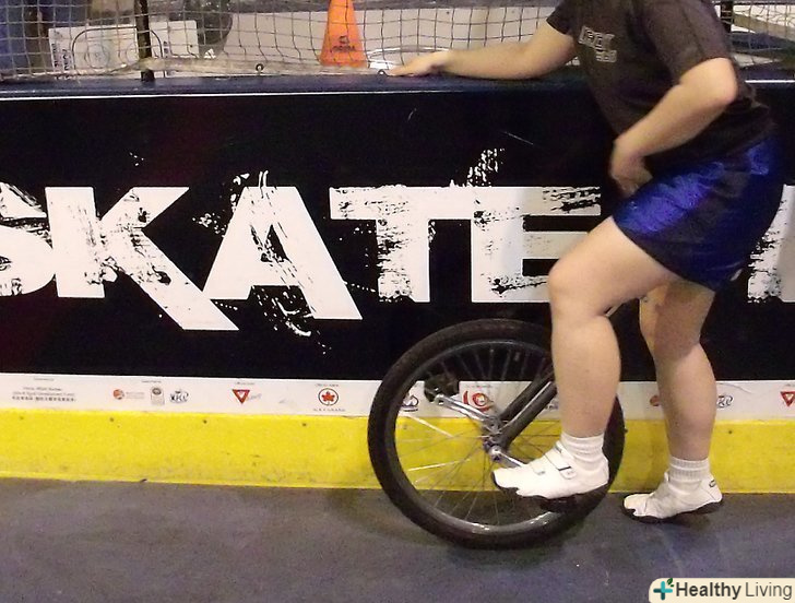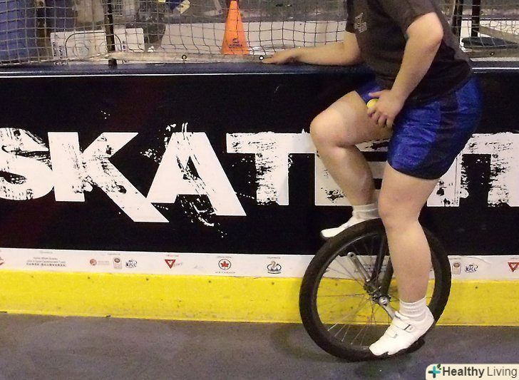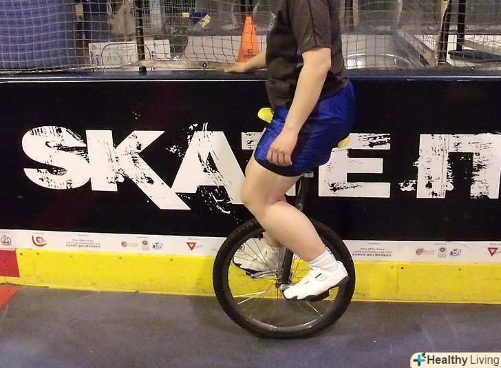 Спробуйте сісти на моноцикл не спираючись. починайте з вихідної позиції і впевненим рухом тисніть на педаль. Не натискайте на педаль занадто різко, інакше ви можете впасти.