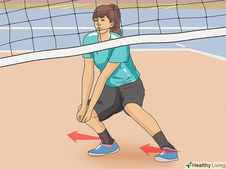 Розставте ноги. розташуйте ноги на ширині плечей. Поставте не домінуючу ногу попереду домінуючої ноги. Плечі і стегна повинні бути вирівняні щодо сітки. Зігніть ноги в колінах. Вкрай важливо, щоб вся ваша вага припадала на домінуючу ногу. [1]- Одним з найважливіших моментів при подачі є стійка волейболіста. Сила подачі залежить не від верхньої частини тіла, а від ніг. Для сильної подачі необхідно правильно перемістити вагу з задньої ноги на передню. Наявність стійкої стійки має для сильної подачі вирішальне значення. [2]