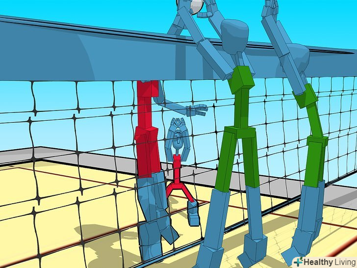Ваші руки повинні знаходитися прямо над сіткою, а не позаду неї, інакше м'яч може відскочити на вашу половину між вами і сіткою.