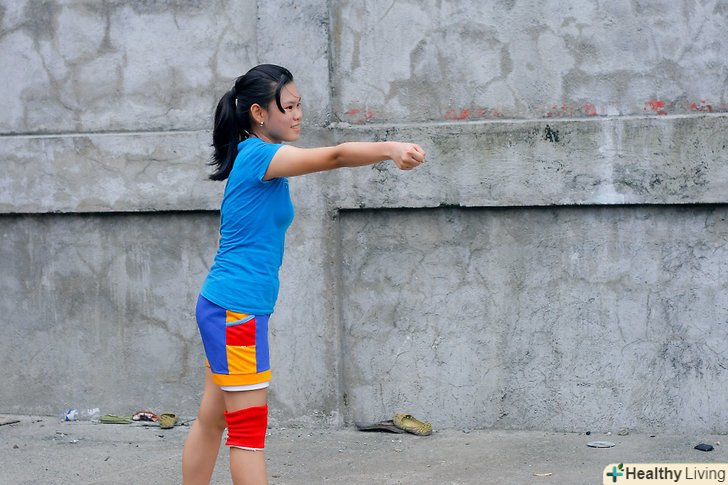 Ваша права (ударна) рука стиснута в кулак. внутрішня сторона долоні зі стиснутими пальцями дивиться вгору.