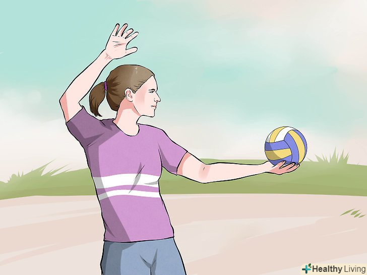 Підкиньте м'яч. підкиньте м'яч вгору так само, як і при верхній подачі. Підкиньте мінімум на 45 см від стартової позиції.- Підкидайте строго вгору, а не в сторону, щоб не втратити рівноваги при подачі.