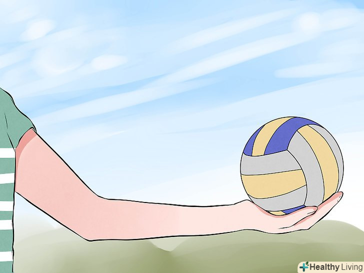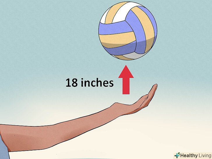 Приготуйтеся підкинути м'яч. Неведущей рукою ви будете підкидати м'яч вгору на 30-45 сантиметрів.- Відпускайте руку, коли м'яч буде на рівні очей або рука повністю випрямиться.
