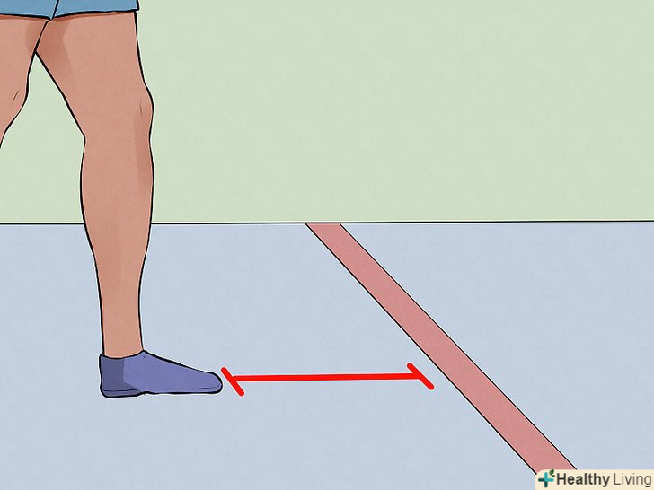 Займіть позицію. Ноги поставте на ширині плечей, але при цьому одну ногу висуньте вперед, іншу — назад.- Ви повинні бути в змозі відхилитися вперед або назад, не боячись при цьому втратити рівновагу. Тому вам потрібно прийняти саме цю стійку, так як вона найстійкіша.