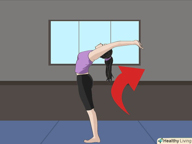 Підніміть руки над головою. Встаньте рівно і підніміть руки вгору. Долоні повинні бути спрямовані обличчям до стелі, а пальці рук – вказувати назад. [12]- Цю вправу буде простіше виконати разом з одним.