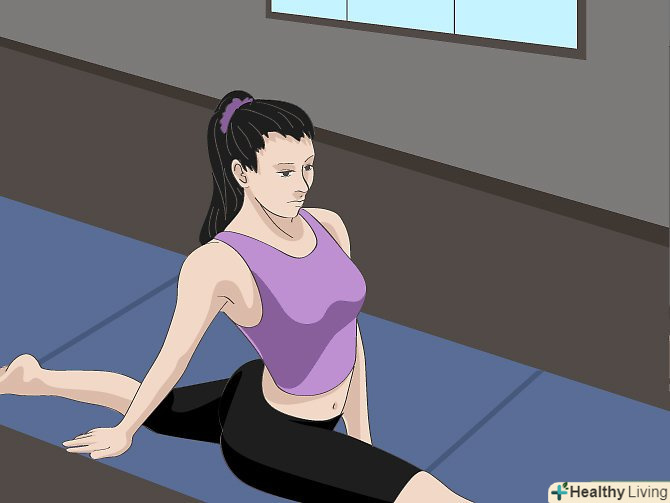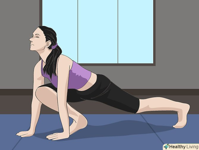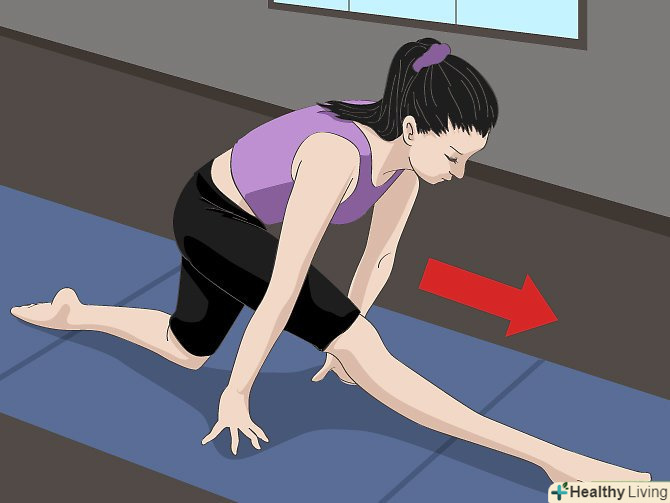 Виконайте розтяжку для нижньої частини тіла. зробіть випад вперед . Доторкніться до землі кінчиками пальців рук або опустіть їх якомога нижче. Вдихніть і починайте повільно випрямляти передню ногу, піднімаючи при цьому сідниці. Видихайте, коли будете випрямляти передню ногу, а потім опустіть спину і поверніться у вихідне положення. [3]- Виконайте розтяжку по 4 рази на кожну ногу.