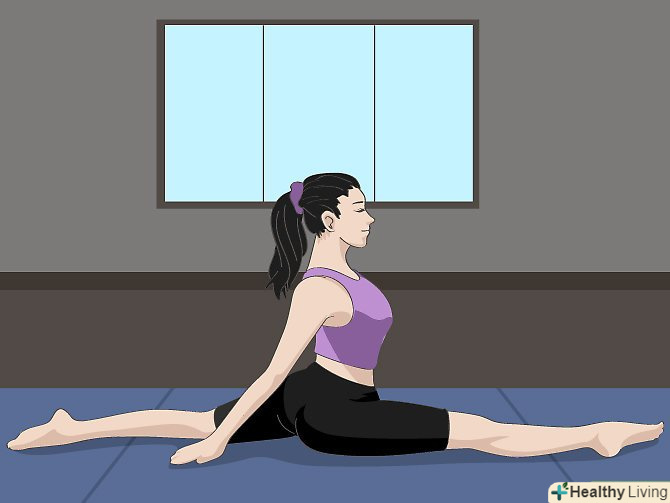 Затримайтеся в цьому положенні. після того як ви витягнете свої ноги якнайдалі, зупиніться і затримайтеся в цьому положенні. [8] порахуйте до 15 або навіть до 30. Це необхідно для того, щоб, будучи в шпагаті, ваше тіло навчилося розслаблятися. Покладіть руки на стілець, стіл або підлогу, якщо в цьому є необхідність.- Знайте, що розтяжка викликає дискомфорт, але ніяк не біль. Якщо при виконанні шпагату ви відчуєте біль, негайно зупиніться. [9]
