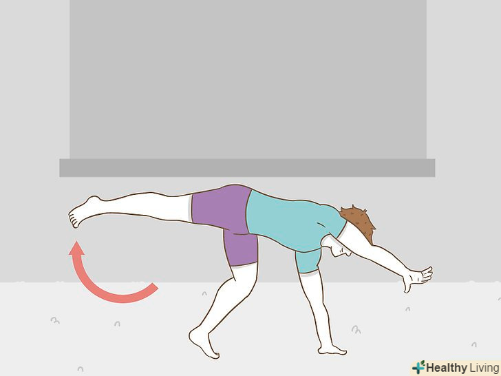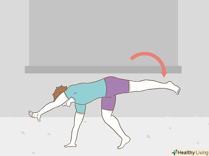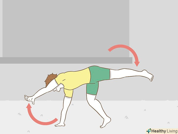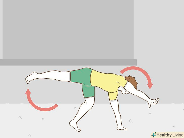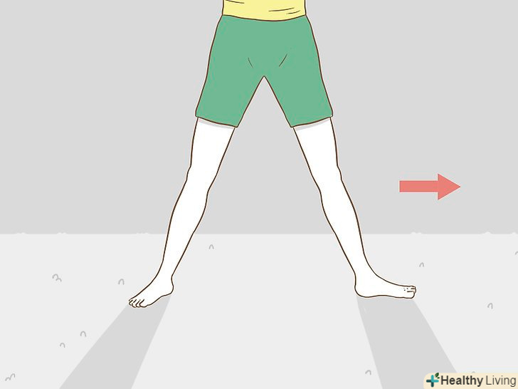 Приземліться на Вашу недомінуючу ногу. у той час як рука, якою ви почали рух відривається від підлоги, протилежна нога повинна пересуватися вниз, як і ваша інша рука уздовж уявної лінії. Майте на увазі, що в той час, як ви замахуєте кожну ногу у напрямку до підлоги, вам доведеться зігнути трохи коліна ніг при приземленні.