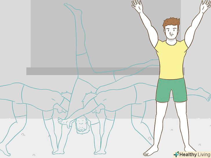 Переконайтеся, що у вас достатньо місця. Пляж, галявина, гімнастичний зал послужать прекрасними місцями для відпрацювання цього елемента. Найкраще спочатку тренуватися на м'якій поверхні, такий як гімнастичний мат, щоб не пошкодити собі що-небудь. Якщо у вас є можливість тренуватися тільки вдома на килимі, то приберіть всі сторонні предмети інтер'єру з вашого шляху, щоб не вдаритися і не порізатися.