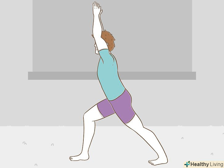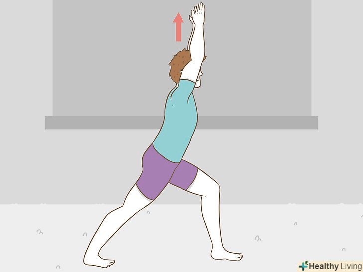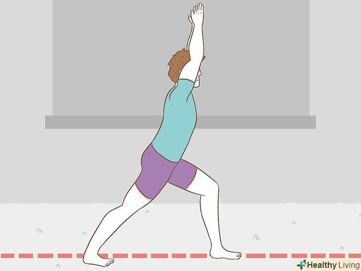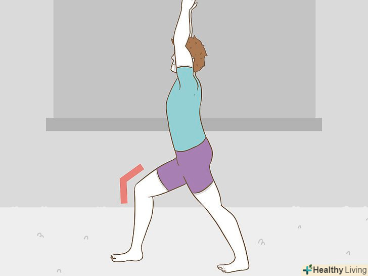 Випрямтеся назад в положення невеликого випаду. ваші руки зараз повинні знаходитися над головою, а особа буде дивитися вперед в ту ж саму сторону, що і спочатку.