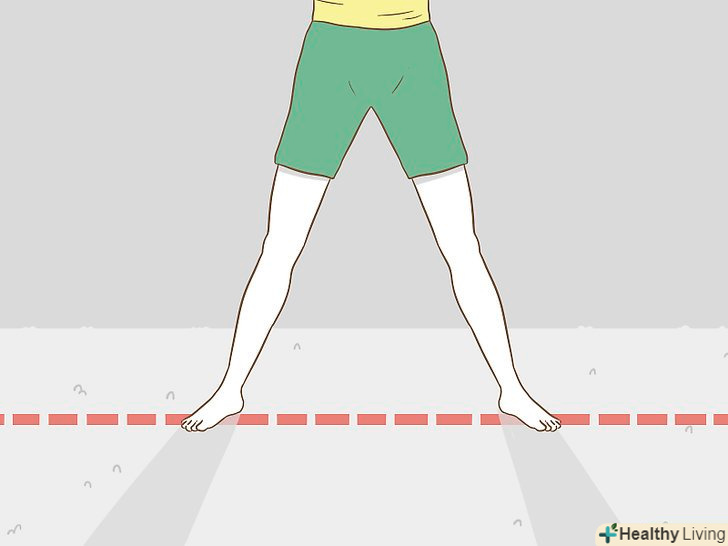 Уявіть пряму лінію на підлозі. обидві ваші стопи повинні розташовуватися на цій лінії. Ваші руки також будуть приземлятися вздовж цієї лінії. Якщо ви відчуваєте, що вам ніяк не вдасться виконати пряме колесо, то просто забудьте про цю лінію і дотримуйтесь нижчевикладених кроків.