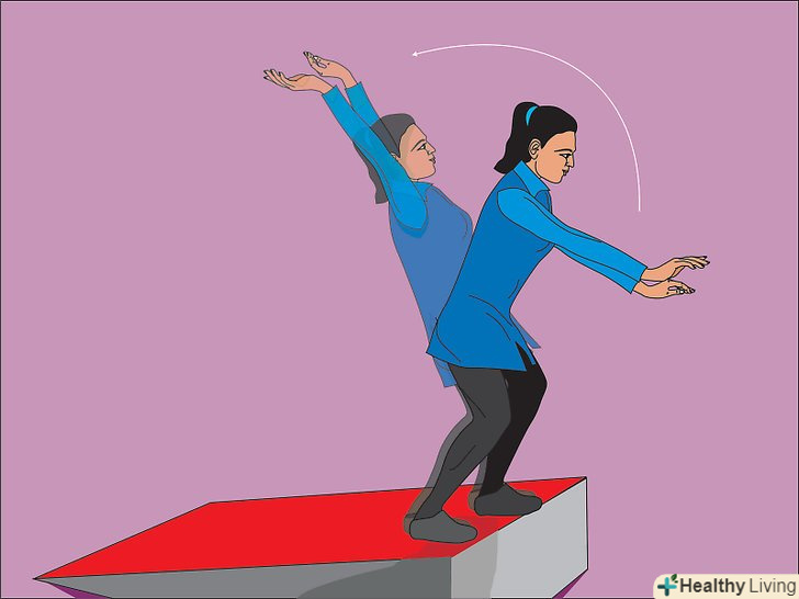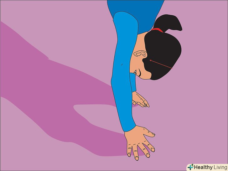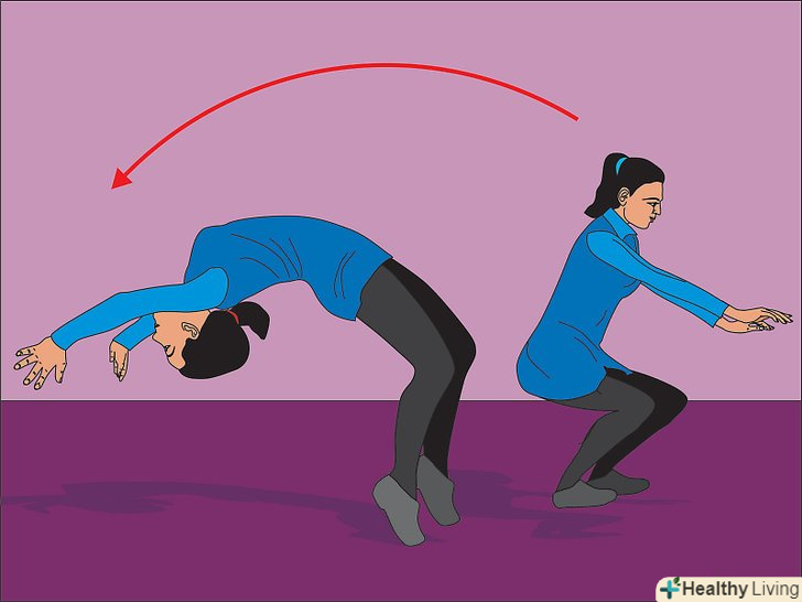 - Ваші руки повинні притискатися до ваших вух під час стрибка назад. В іншому випадку ви ризикуєте вдаритися головою і отримати травму спини або шиї. Підніміть руки вгору і попросіть друга перевірити правильність вашої стійки, і якщо йому видно ваші вуха.