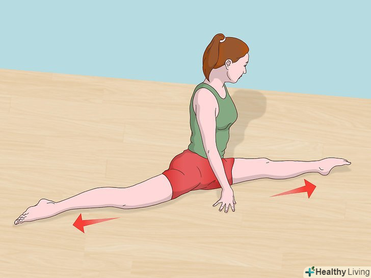 Розігрівайтеся поздовжніми шпагатами (не обов'язково). якщо ви вже вмієте робити поздовжні шпагати, їх можна використовувати для того щоб розігрітися. Поздовжні шпагати прекрасно допомагають розвинути пластичність стегон і підколінних сухожиль для того, щоб перейти до освоєння поперечного шпагату.