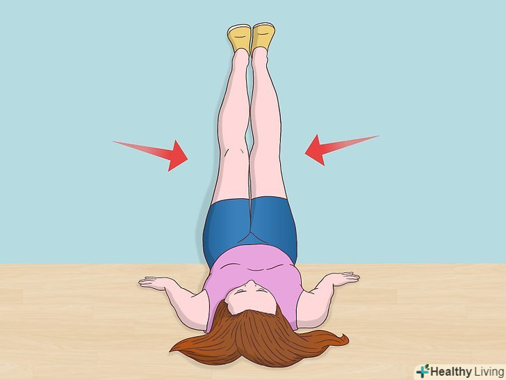 Розташуйтеся біля стіни. ляжте спиною на підлогу, підніміть ноги в повітря і притисніть сідницями до стіни. Притискаючись до стіни для підтримки, стежте за тим, щоб спина залишалася прямою. Для занять рекомендується використовувати зручний одяг, яка не буде сковувати рухи. Якщо поверхня підлоги некомфортна для вашої спини, підстеліть собі килимок або підкладіть подушку. [1]- Вам буде потрібно спортивне взуття з хорошим зчепленням підошви з поверхнею, так як буде необхідно контрольовано переміщати ноги по стіні.