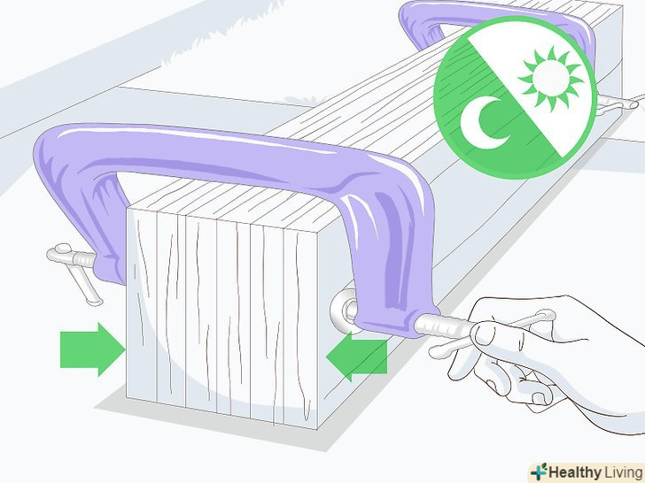 Зафіксуйте дошки, поки клей буде сохнути. найкраще використовувати затискачі для щільної фіксації склеюються дерев'яних деталей. Якщо ж під рукою немає затискачів, покладіть конструкцію горизонтально, широкою стороною дощок на підлогу, а зверху встановіть що-небудь важке і почекайте, поки клей повністю висохне .- Для повного висихання необхідно 24 години.