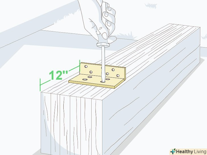 Прикріпіть куточки-тримачі з оцинкованої сталі до отриманого бруса. прикрутіть куточки-тримачі (шурупи можуть поставлятися в наборі з куточками-тримачами) до нижньої частини бруса на відстані приблизно 12 дюймів (30.5 см) від краю кожної сторони.