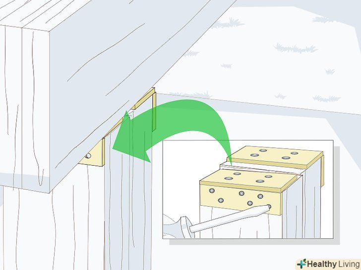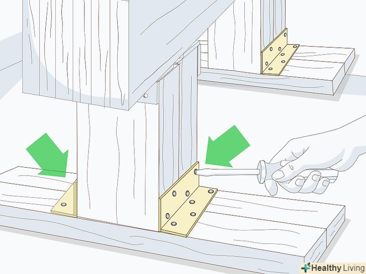 Прикріпіть опори до бруса. чотири дошки довжиною 12 дюймів (30,5 см), перетином два на чотири дюйми закріпіть до куточків-власників використовуючи 4 шурупа для однієї опори. Вам знадобиться 16 шурупів для закріплення всіх опор.- Для однієї опори, один тримач - куточок з чотирма отворами для шурупів.