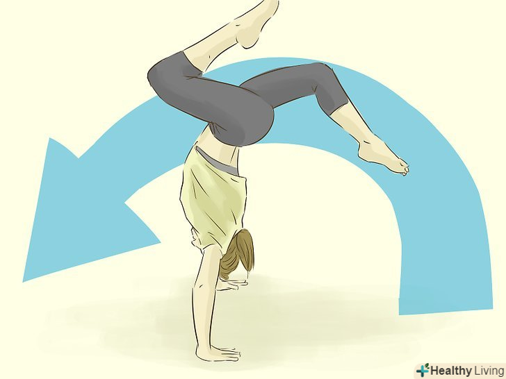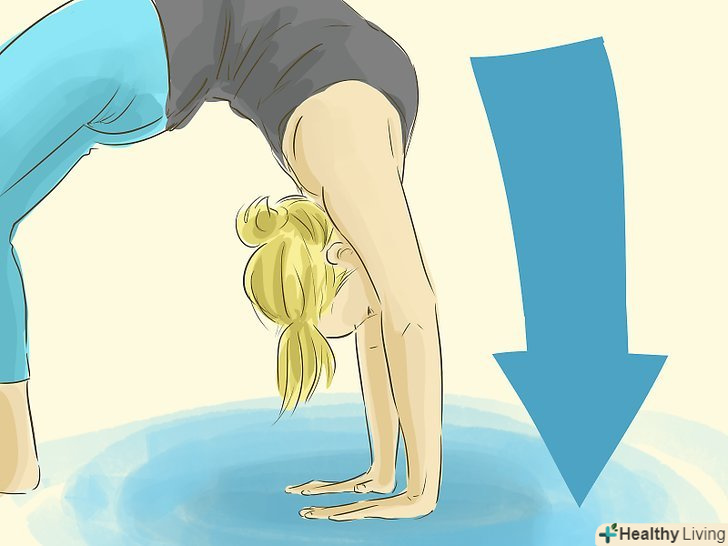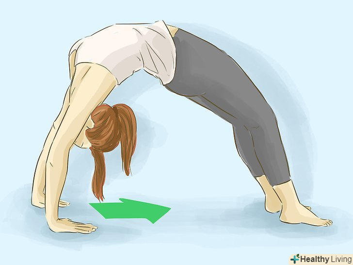 Підійдіть руками ближче до ніг. це допоможе вам досягти достатнього балансу для перевороту.- Спина обов'язково повинна прогинатися і не провисати до підлоги.