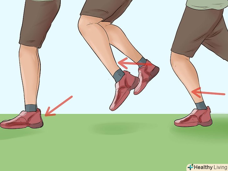 - Практикуйте розбіг. Пробіжіть кілька кроків, підстрибніть, приземлитеся ступнями і відштовхніться вгору носками стоп якомога вище.