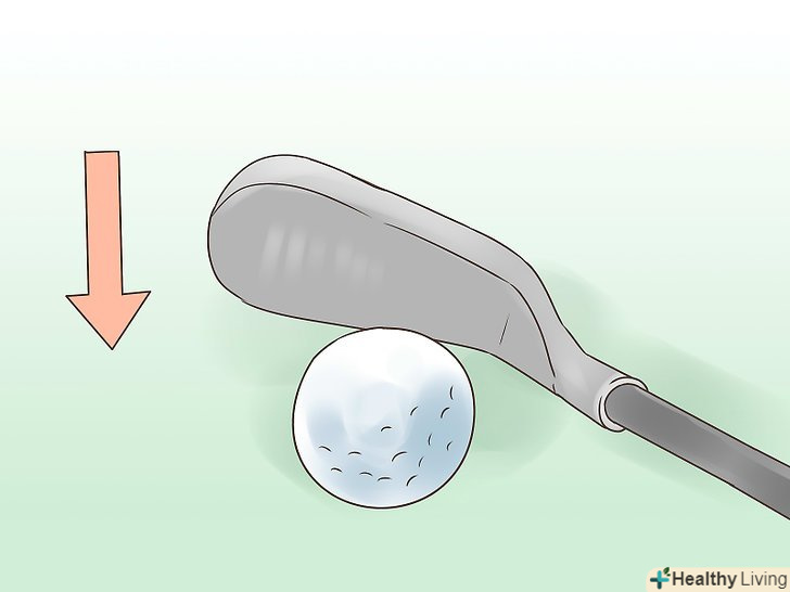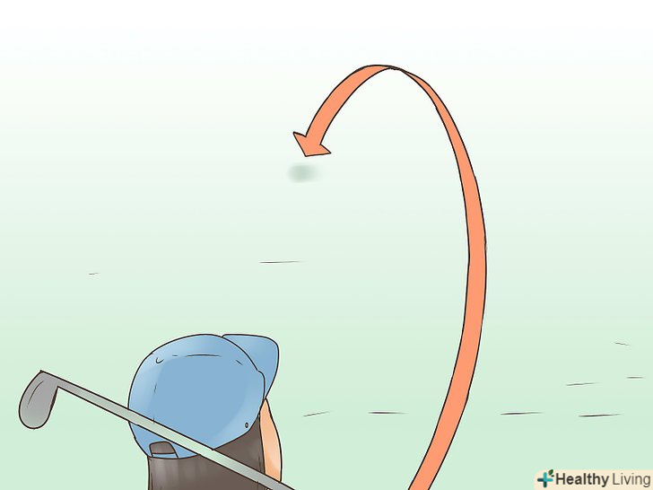 Вдарте з трохи відкритим обличчям ключки. при ударі по м'ячу, носок ключки повинен бути злегка нахилений назад, тобто п'ята буде попереду носка. [3] так ви отримаєте політ м'яча з плавним переміщенням зліва на право, що вам і необхідно для «фейда».