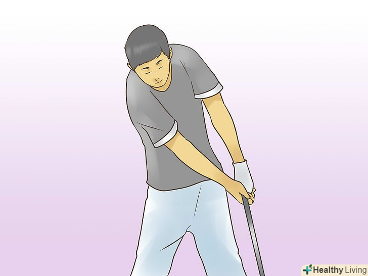 Тримайте носок ключки перед її п'ятою. як тільки ви потрапили по кулі, спробуйте визначити: чи знаходиться носок ключки перед її п'ятою; і, продовжуючи свій рух далі, стежте за тим, щоб все так і залишалося.- Щоб зробити це, права рука перетне площину лівої, коли буде проведений удар по м'ячу. Це дозволить виконати вам "дроу".