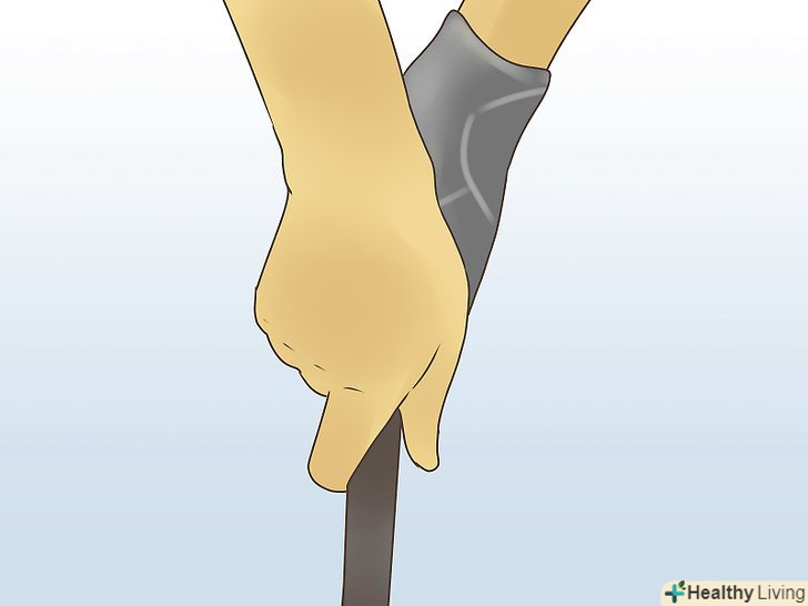 Використовуйте сильне захоплення. зробити удар "дроу" - означає вдарити по м'ячу так, щоб його траєкторія польоту була вигнута справа наліво (якщо ви правша). Застосуйте те, що називається сильним захопленням, для виконання даного удару. Слабкий захоплення застосовується для» фейда«, сильний — для»дроу". Щоб справити удар " дроу»:- Розмістіть вашу ліву руку зверху рукоятки, з зап'ястям, повернутим до Вашого тіла таким чином, щоб було видно кілька стиснутих пальців.